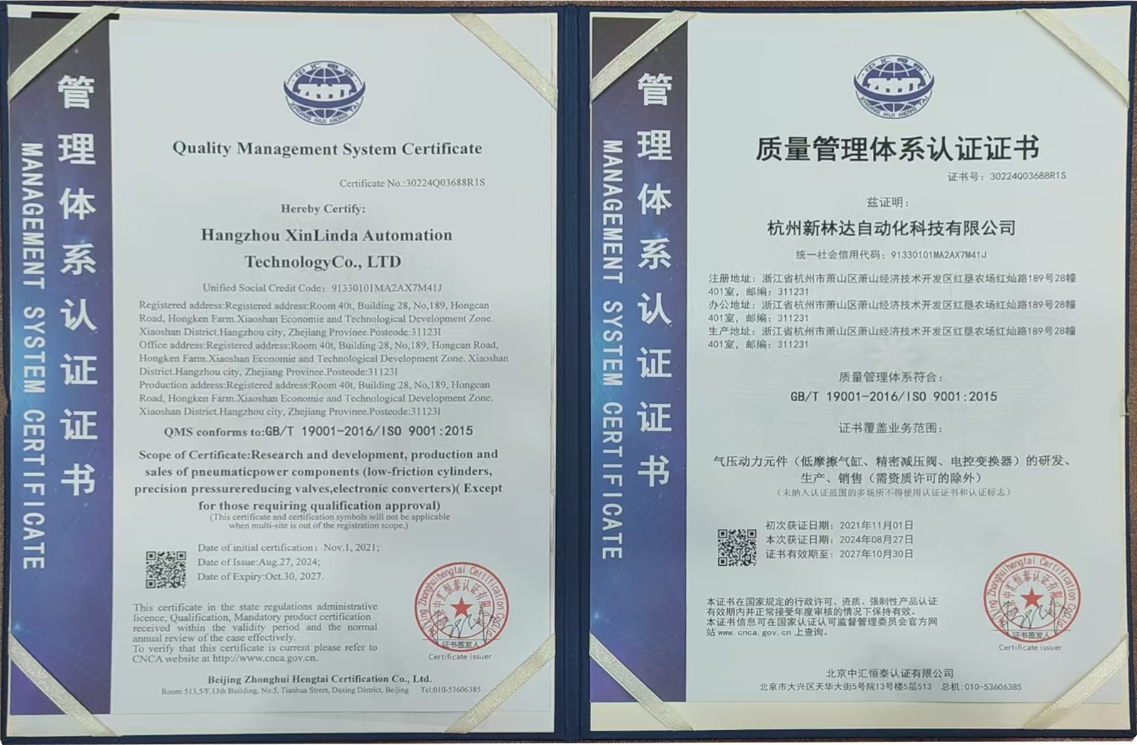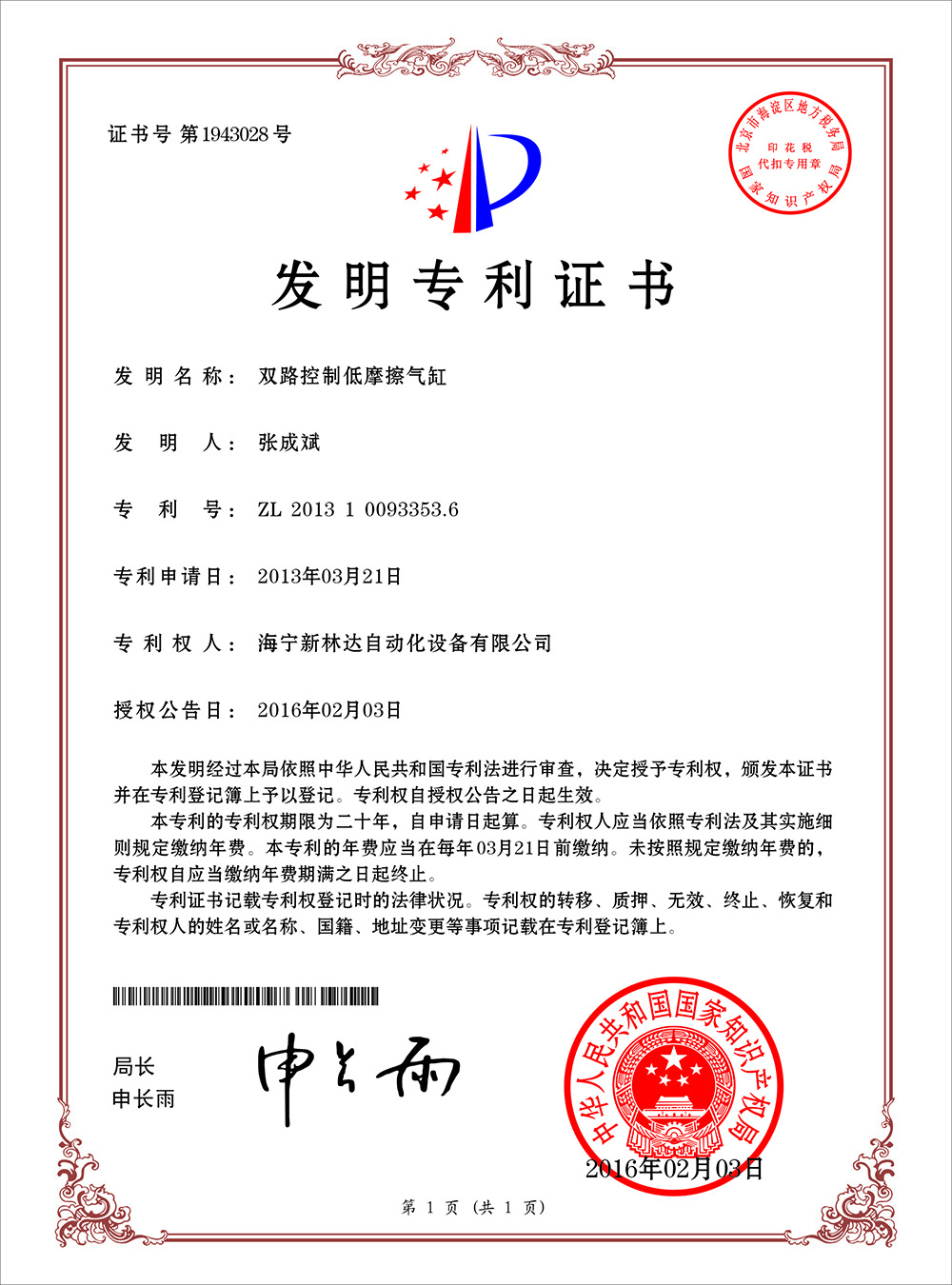 杭州新林達(dá)自動(dòng)化科技有限公司成立于2011年,前身為海寧新林達(dá)自動(dòng)化設(shè)備有限公司,是一家">專業(yè)從事低/超低摩擦氣缸專業(yè)制造商,擁有先進(jìn)的氣動(dòng)元件制造設(shè)備以及一流的生產(chǎn)工藝,管理嚴(yán)格,生產(chǎn)規(guī)范通過了二項(xiàng):浙江省工業(yè)新產(chǎn)品認(rèn)證。公司現(xiàn)有自主品牌"新林達(dá)"并榮獲二十多項(xiàng)專利技術(shù)(其中3項(xiàng)發(fā)明專利)和多項(xiàng)國際認(rèn)證,并榮獲《高新技術(shù)企業(yè)》和《浙江省科技型中小企業(yè)》